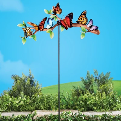 Colorful butterflies perched together along a branch make this unique stake a beautiful addition to your yard or garden. Simply stake it into the ground to rise high above the plants in your garden. Easy assembly req. Metal. 16 1/2″L x 32 1/4″H.