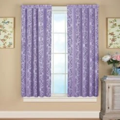 Thermal-backed curtains provide insulation from heat and cold, block light, reduce outside noise and feature a beautiful scrolled design. Panels feature an all-over scroll pattern with an elegant sheen and are sold individually. Each panel has a rod pocket top for easy hanging. Machine wash. Polyester. Colors available in Taupe, Blue, Chocolate, Sage, Burgundy or Lavender. Sizes available in 63″ (50″ x 63″), or 84″ (50″ x 84″).
