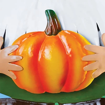 These charming gnomes are loaded with Autumn accents. Each wears a tall sunflower hat with sparkling solar-powered LED lights that automatically shine at night. Each stakes easily into the ground and includes 1 “AAA” rechargeable battery. Iron. 8 1/2″L x 15 1/4″H. Choose: Pumpkin or Sunflower.