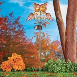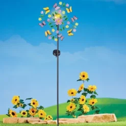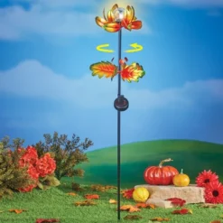 Collections Etc Solar Powered Autumn Leaves Wind Spinner Garden Stake 10.75 X 10.75 X 40.5